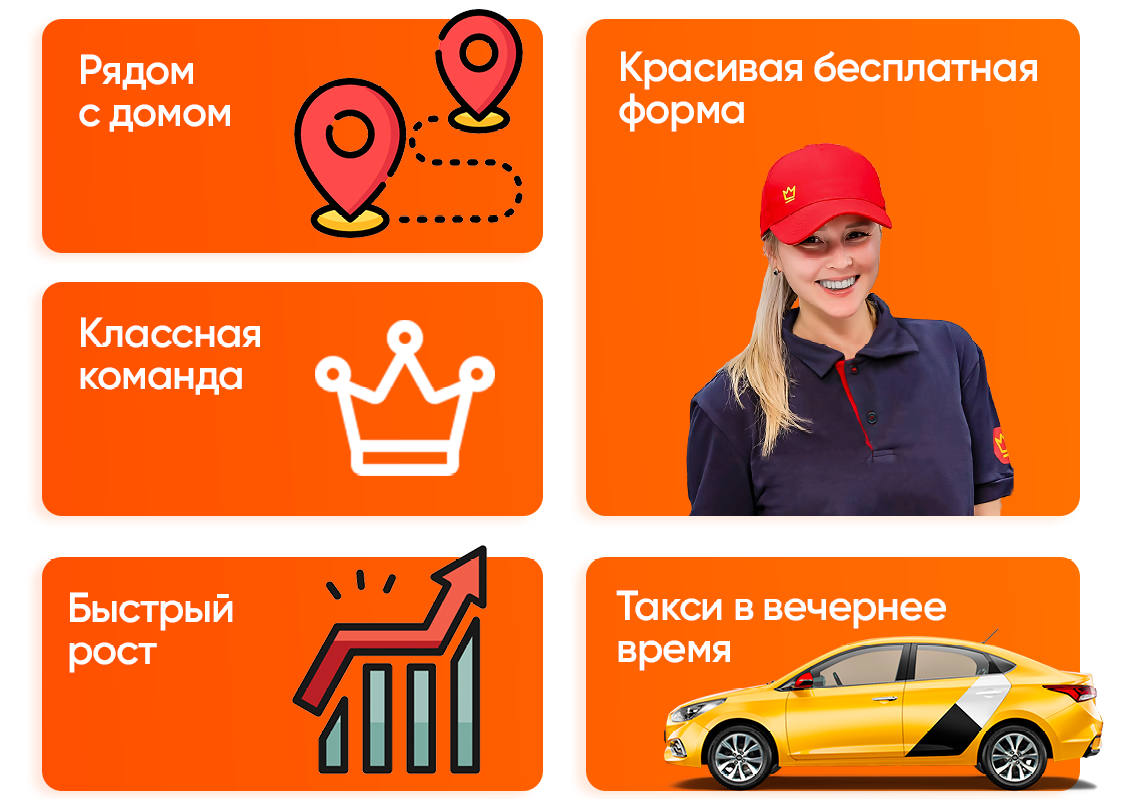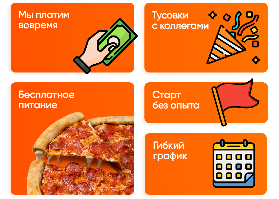 Ты можешь готовить шаурму, пиццу, Wok, роллы, можешь работать на кассе – выбирай, что тебе по душе.